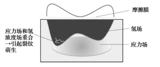 圖1 高濃度氫和高剪切應(yīng)力重合區(qū)裂紋萌生示意圖
