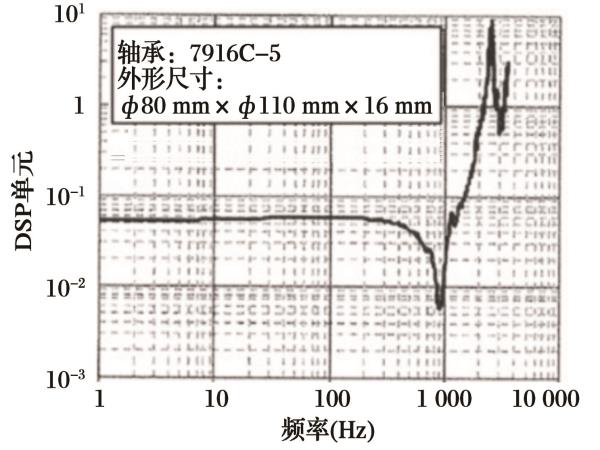 當(dāng)轉(zhuǎn)速為5 000 r/ min,且主軸在徑向振動(dòng)時(shí)的動(dòng)態(tài)剛度測(cè)量實(shí)例如圖2所示。X軸為輸入頻率,Y軸為量綱一的剛度。當(dāng)頻率為900 Hz左右時(shí)剛度降低,并能確定主軸在徑向的一維固有頻率。