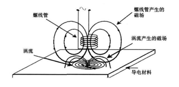 磁粉探傷檢測也是一種無損檢測方法,是基于金屬微觀結(jié)構(gòu)的變化所引起的傳導(dǎo)率變化來進(jìn)行檢測。當(dāng)軸承套圈表面或近表面出現(xiàn)缺陷時,將影響到渦流的強度和分布,渦流的變化又引起檢測線圈電壓和阻抗的變化,根據(jù)這一變化,間接判斷缺陷的存在,檢測原理如下。
