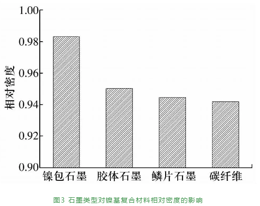 2.3 石墨類型對鎳基復(fù)合材料密度的影響