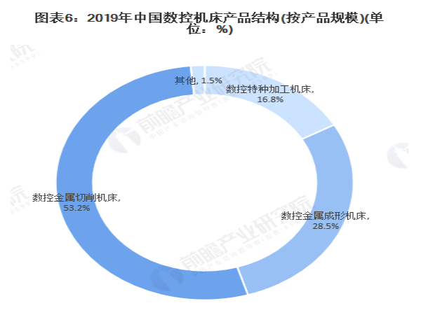 發(fā)展數(shù)控機(jī)床智能化,可從數(shù)控機(jī)床的各細(xì)分產(chǎn)品出發(fā)。從數(shù)控機(jī)床產(chǎn)品結(jié)構(gòu)看,中國數(shù)控機(jī)床產(chǎn)品比較多的為數(shù)控金屬切削機(jī)床,占比達(dá)到53.2%。
