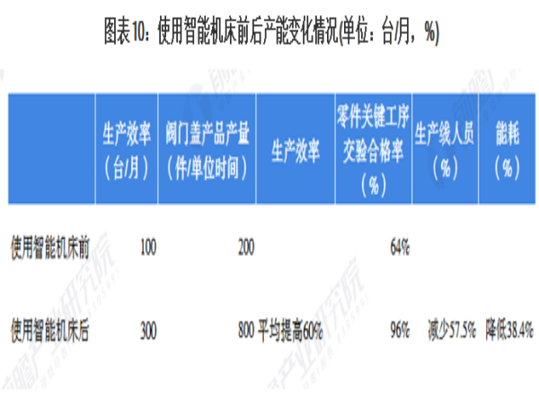 從具體智能機(jī)床項(xiàng)目來看,工信部《高檔數(shù)控車床制造數(shù)字化車間的研制與示范應(yīng)用》項(xiàng)目具有示范意義。該項(xiàng)目關(guān)鍵設(shè)備數(shù)控化率100%,生產(chǎn)效率由月產(chǎn)100臺提高到300臺,生產(chǎn)線人員減少57.5%,能耗降低38.4%,零件關(guān)鍵工序交驗(yàn)合格率由64%提高到96%,取得明顯經(jīng)濟(jì)效益。