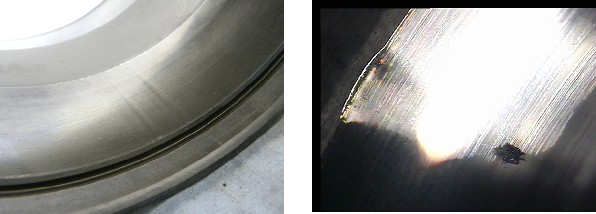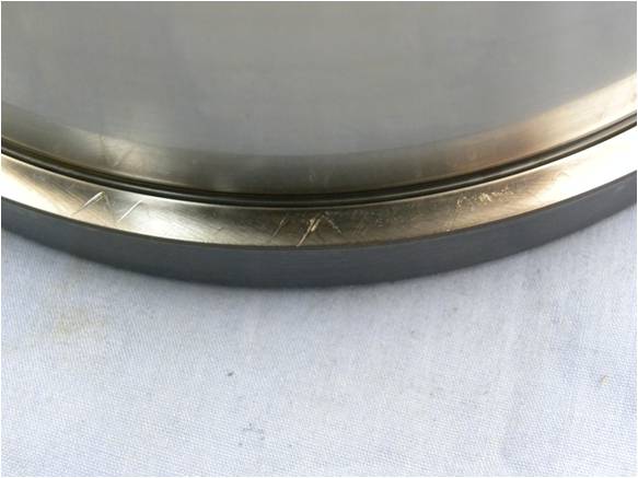 在旋轉(zhuǎn)過(guò)程中,由于發(fā)生振動(dòng)而造成的偽壓痕則表現(xiàn)為間距較小的波紋狀凹槽。旋轉(zhuǎn)過(guò)程中的旋轉(zhuǎn)件的壓痕基本都是360度方向都存在的。