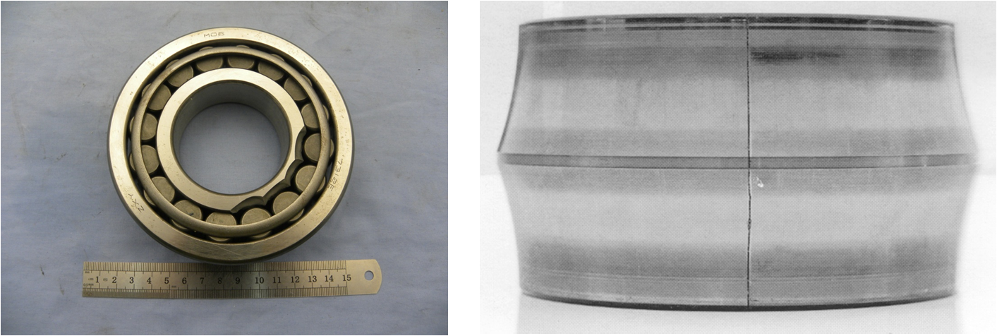 靜止軸承承受靜載荷或沖擊載荷過(guò)載時(shí),將導(dǎo)致滾動(dòng)體與滾道接觸處發(fā)生塑性變形,即在軸承滾道上、對(duì)應(yīng)于滾動(dòng)體節(jié)距的位置形成淺的凹陷或凹槽。