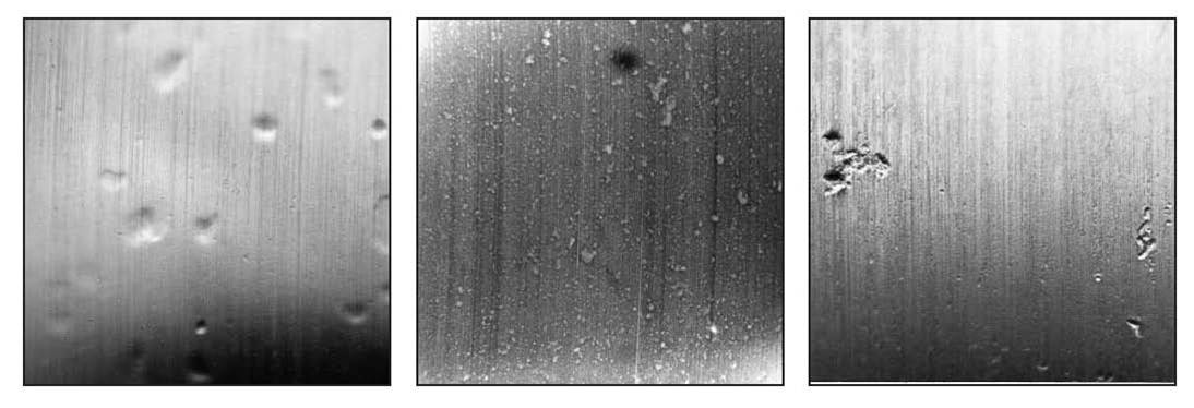 當(dāng)潤(rùn)滑劑中的水分或劣化的潤(rùn)滑劑與其相鄰的軸承零件表面發(fā)生反應(yīng)時(shí),可在滾動(dòng)體和軸承套圈之間的接觸區(qū)內(nèi)發(fā)現(xiàn)一種特定形式的銹蝕,在深度銹蝕階段,接觸區(qū)在對(duì)應(yīng)于球或滾子節(jié)距的位置將會(huì)變黑,最終產(chǎn)生腐蝕麻點(diǎn)。