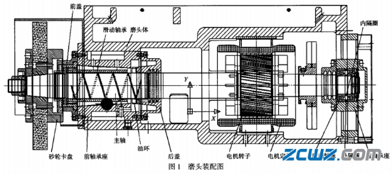 這里舉例的是一種平磨磨頭主軸采用一端滑動(dòng)、一端滾動(dòng)的主軸軸承結(jié)構(gòu)。其中滑動(dòng)軸承與主軸之間的摩擦狀態(tài)有3種:即邊界摩擦、液體摩擦、混合摩擦。