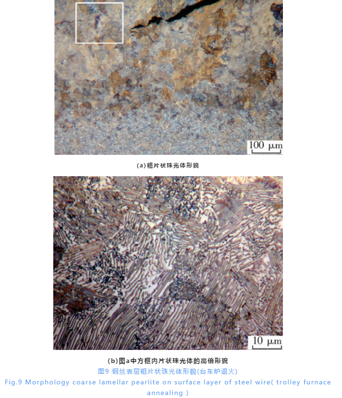 將表層的脫碳層和細(xì)片狀珠光體一起算作總脫碳層測(cè)量深度,會(huì)對(duì)退火爐的爐況評(píng)價(jià)及工藝調(diào)整產(chǎn)生誤導(dǎo),也會(huì)造成供需雙方的質(zhì)量爭(zhēng)議,易引起不必要的糾紛。若細(xì)片狀珠光體層較深,還會(huì)引起冷拉橫裂甚至斷裂,從而導(dǎo)致產(chǎn)品報(bào)廢。