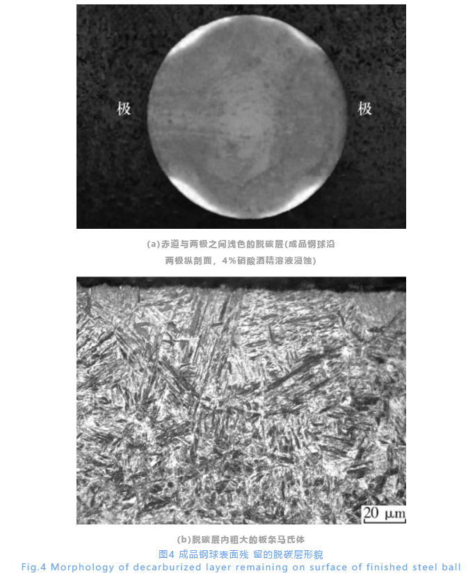 GCrl5熱軋鋼材經(jīng)球化退火后表面存在片狀珠光體層,其原因不能一概而論地判定為原材料的氧化脫碳,應(yīng)根據(jù)片狀珠光體的形貌,如分布狀態(tài)(周邊或局部)、深度、片間距有無(wú)明顯變化(明顯的過(guò)渡區(qū))進(jìn)行判定,有明顯變化者應(yīng)判為脫碳。正常情況下,脫碳層片間距相對(duì)較大,其形貌呈現(xiàn)為粗片。