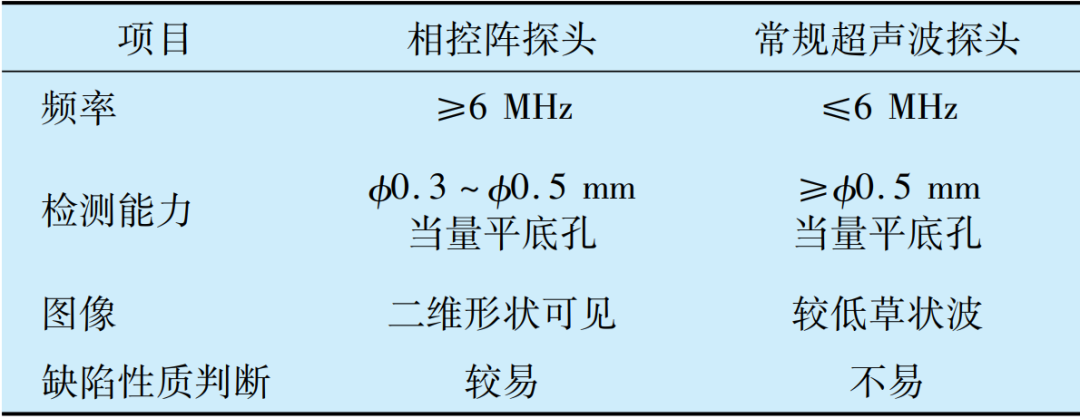 Tab.2 Comparison of effects of phased array probe and con-ventional ultrasonic probe for detecting overburning defects