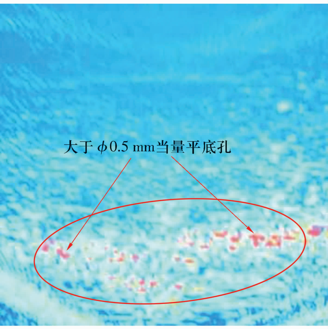 3)過燒缺陷的評定:若單個缺陷不小于φ0.5 mm當量平底孔或密集型缺陷在25 mmx25 mm區(qū)域內(nèi)存在3個小于φ0.5 mm當量平底孔的缺陷,均判定為過燒。
