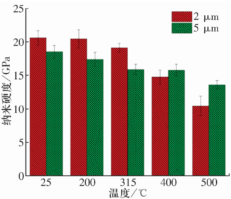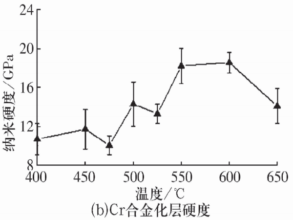 鑒于純Cr涂層硬度較低,為滿足8Cr4Mo4V鋼服役需求,文獻[42]利用微弧氧化技術(shù)在8Cr4Mo4V鋼表面沉積了不同厚度的CrN涂層,其硬度如圖12所示,CrN涂層硬度最高達20 GPa以上,相較于文獻[12]中8Cr4Mo4V鋼基體硬度(11 GPa),提高了80%以上,這將顯著提高材料耐磨性。另有研究顯示,CrN涂層可顯著提高材料耐蝕性不過8Cr4Mo4V鋼該涂層的耐蝕性目前缺乏相關(guān)的試驗數(shù)據(jù)。
