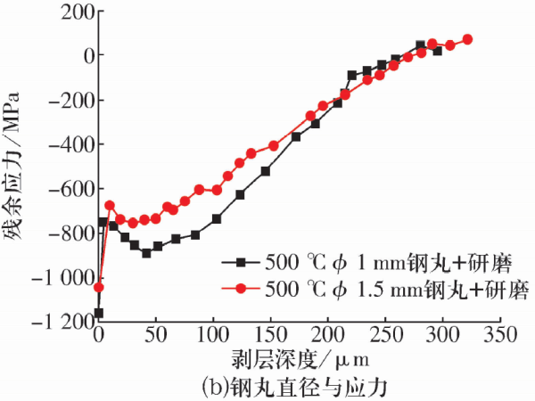 圖14 噴丸對8Cr4Mo4V鋼殘余應(yīng)力及硬度的影響