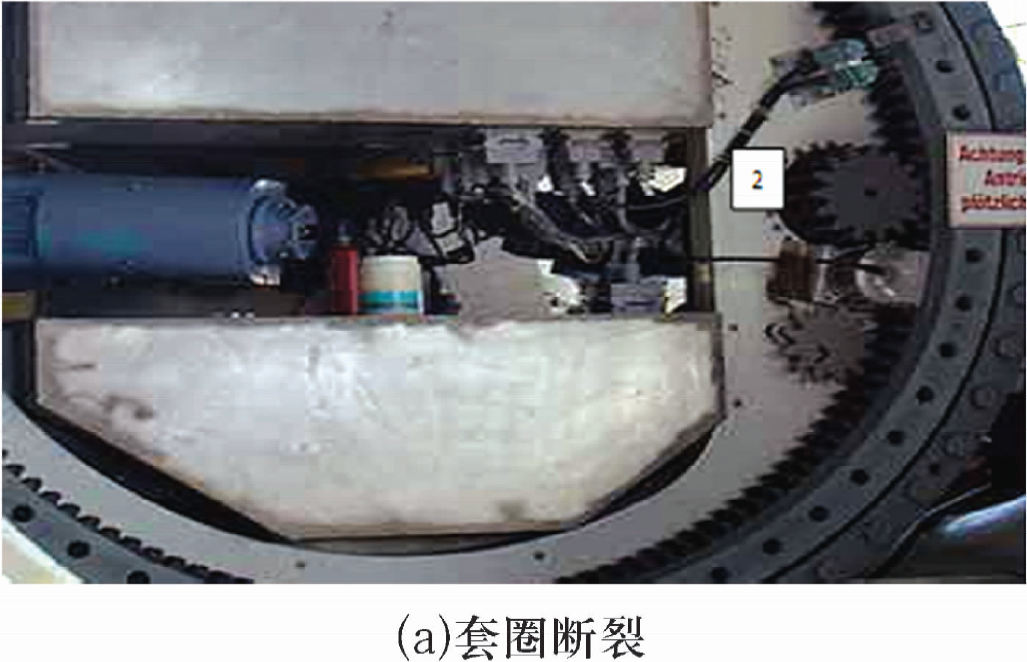 目前,工程中常見的風(fēng)電機組轉(zhuǎn)盤軸承失效模式主要有套圈斷裂、保持架斷裂、保持架磨損、密封圈漏脂等,如圖7所示。