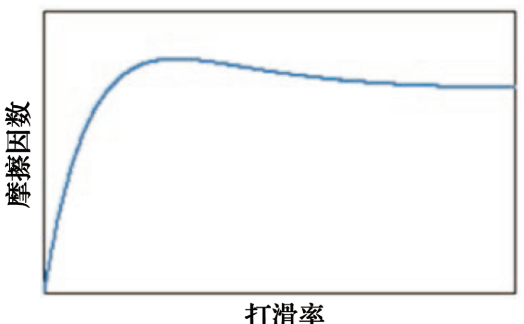 首先,利用模擬目標(biāo)產(chǎn)品的軸系模型進(jìn)行了靜力學(xué)分析,以了解作用在被研究軸承上的軸向、徑向載荷以及由嚙合引起的游隙變化、滾道變形等。靜力學(xué)分析所得到的數(shù)據(jù)被用做動(dòng)力學(xué)分析的輸入數(shù)據(jù),動(dòng)力學(xué)分析中同樣也要輸入事件時(shí)間等數(shù)據(jù)。此外,為了設(shè)置滾動(dòng)體與滾道之間的摩擦因數(shù),測(cè)量了使用典型潤(rùn)滑油時(shí)不同壓力下相對(duì)于圓周速度的打滑率與摩擦因數(shù)的關(guān)系(拖動(dòng)曲線)。由此建立了數(shù)據(jù)庫(kù),以啟用自動(dòng)設(shè)置。拖動(dòng)曲線的例子如圖4所示。