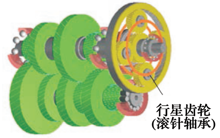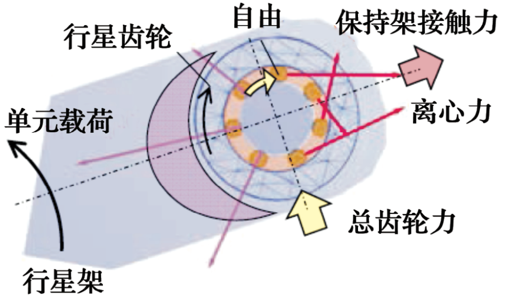 作為變速箱的行星齒輪機(jī)構(gòu)的行星齒輪中使用的滾針軸承(圖10)運(yùn)轉(zhuǎn)中產(chǎn)生復(fù)雜的運(yùn)動(dòng),不僅有自轉(zhuǎn),還有作用在軸承上的離心力,因此軸承本身能旋轉(zhuǎn),同時(shí)也有來(lái)自齒輪的載荷和力矩。在這種環(huán)境下,作用在保持架上的載荷更大,且存在保持架斷裂的問(wèn)題。采用現(xiàn)有的靜力學(xué)分析技術(shù)不能分析在復(fù)雜運(yùn)動(dòng)中的內(nèi)部沖擊載荷,需利用S.S.A.P./MBD系統(tǒng)進(jìn)行仿真。