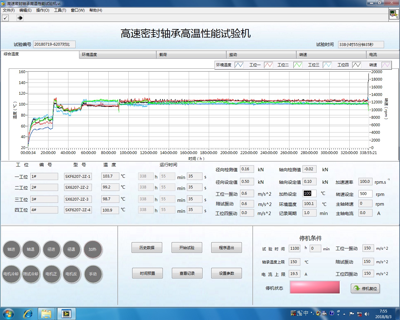 圖16 對比試驗(yàn)的SKF軸承試驗(yàn)運(yùn)行曲線3