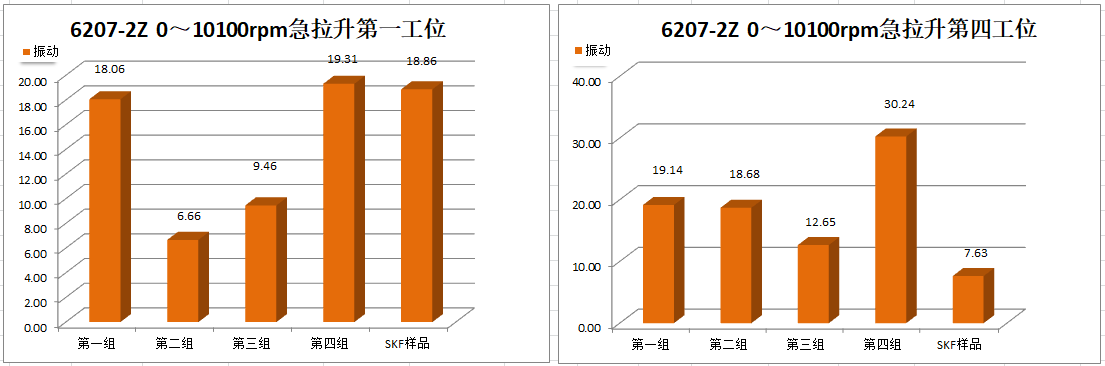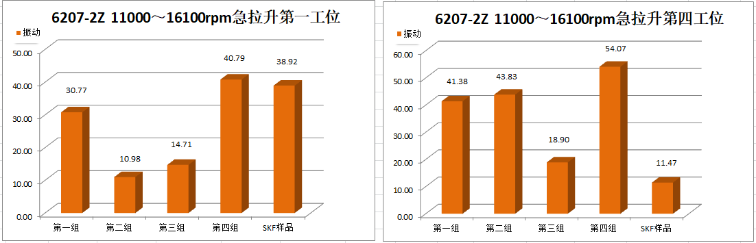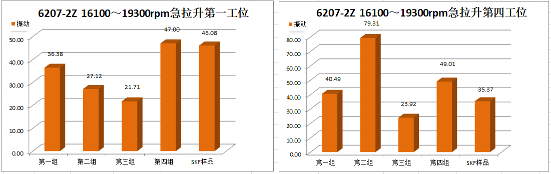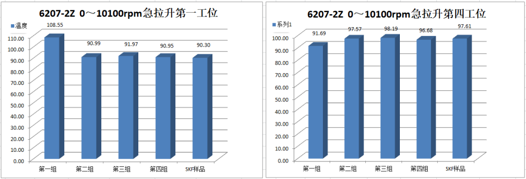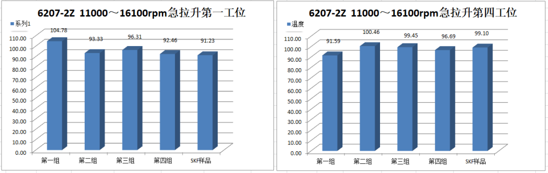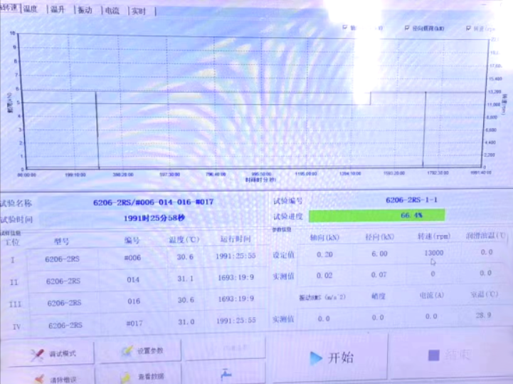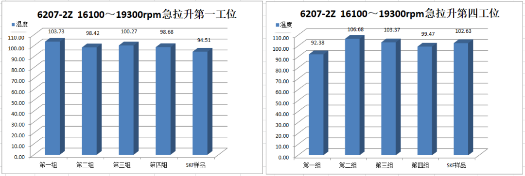 Ⅳ號工位軸承運(yùn)行到18000r/min速度段2min后溫度報(bào)警停機(jī),第二次運(yùn)行到18000r/min速度段15min后溫度報(bào)警停機(jī)。