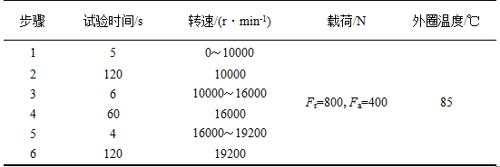 高變速性能試驗(yàn)結(jié)果見表3,連續(xù)運(yùn)行時(shí)間3150s(52.5min),10個(gè)循環(huán),軸承及保持架完好。