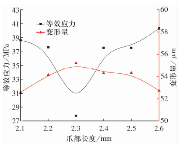 圖12 底弧半徑和爪部長度對保持架強(qiáng)度的影響
