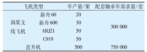 表2 我國民用飛機產(chǎn)量及相應配套軸承需求量