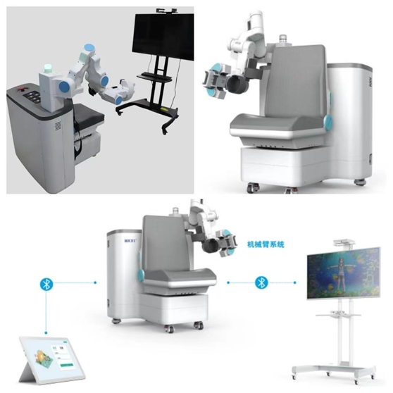 上肢康復(fù)設(shè)備I代機(jī)應(yīng)用于醫(yī)院康復(fù)中心幫助腦卒中患者或骨骼損傷患者的術(shù)后康復(fù)。產(chǎn)品共有5自由度、7種常用訓(xùn)練動(dòng)作,可以實(shí)時(shí)模擬人體上肢運(yùn)動(dòng)規(guī)律,更加精準(zhǔn)、高效地進(jìn)行康復(fù)訓(xùn)練。