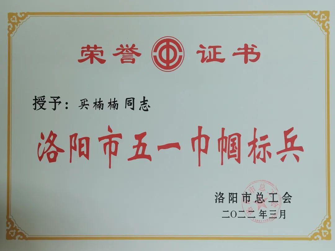近日,洛陽市總工會表彰了“2021年度洛陽市女職工工作先進(jìn)集體和先進(jìn)個人”,洛陽軸承研究所有限公司制造服務(wù)事業(yè)部非金屬材料開發(fā)部買楠楠同志被授予“洛陽市五一巾幗標(biāo)兵”榮譽稱號。