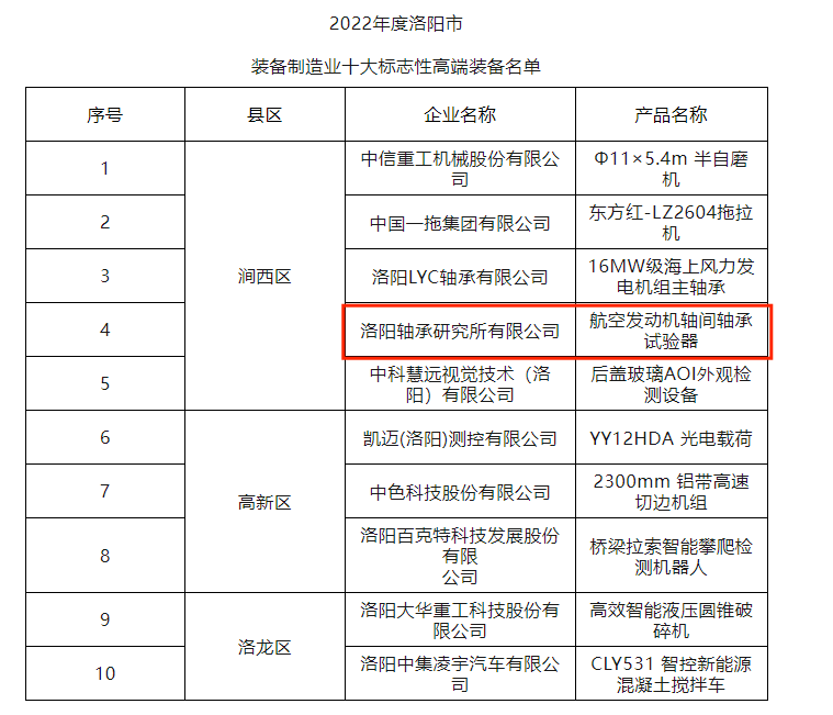 軸研所產(chǎn)品入選洛陽市裝備制造業(yè)十大標(biāo)志性高端裝備