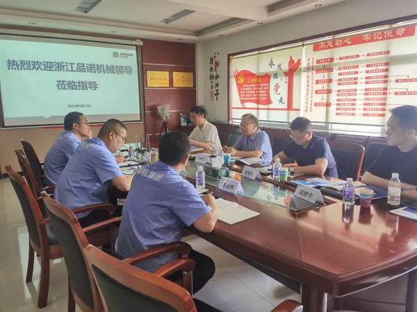 6月15日,浙江品諾機械有限公司(以下簡稱“浙江品諾”)董事長王繼陽一行4人蒞臨公司考察交流,公司黨委書記、董事長高元安親切接見并陪同參觀。