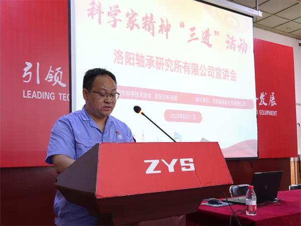 8月31日,由洛陽市科協(xié)、洛陽市科技局主辦,軸研所承辦的科學(xué)家精神“三進”活動宣講會在軸研所順利舉辦。洛陽市科協(xié)黨組書記于為民,洛陽市科技局黨組成員、二級調(diào)研員鄭紅建,軸研所黨委委員、副總經(jīng)理姜維出席宣講會。會議由軸研所總經(jīng)理助理王科貝主持,軸研所科技工作者代表共70余人參會。