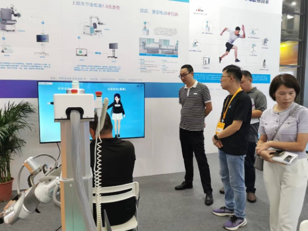本次參展的產(chǎn)品有針對(duì)腦卒中及骨折病人術(shù)后康復(fù)的上肢關(guān)節(jié)康復(fù)器1.0、1.0改進(jìn)型,用于頸、腰椎病治療的頸部、腰部電動(dòng)牽引器。開(kāi)展首日,產(chǎn)品就吸引多名行業(yè)人士的關(guān)注,前來(lái)參觀體驗(yàn)的嘉賓絡(luò)繹不絕,現(xiàn)場(chǎng)的工作人員以最飽滿(mǎn)的工作熱情和專(zhuān)業(yè)態(tài)度向前來(lái)咨詢(xún)與了解的客戶(hù)和體驗(yàn)者們進(jìn)行了系統(tǒng)講解。