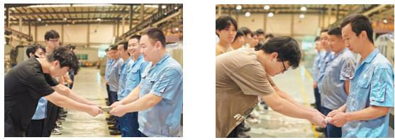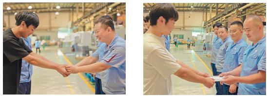 一份熱氣騰騰的早餐,一瓶潤人心田的飲料,一罐洋溢清香的口香糖,一句暖人心扉的話語……大家以豐富多樣的形式感謝師傅們一直以來的拳拳關(guān)愛與諄諄教導(dǎo)。他們猶如一股清泉,為公司高質(zhì)量發(fā)展注入了蓬勃的新生力量。從徒弟成長為師傅,再由師傅引領(lǐng)新的徒弟,這場師徒間的接力賽,綻放著璀璨的“質(zhì)造+智造”之光。